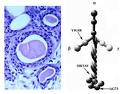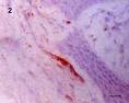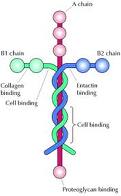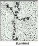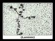 Laminina. A proteína laminina é um componente importante da membrana basal, como o colágeno IV . O anticorpo marca duas membranas basais, uma em volta dos vasos, e produzida pelas células vasculares (endoteliais e musculares lisas), e a outra que limita externamente o espaço perivascular, e é, presumivelmente, produzida pelas células ependimárias (do tumor).